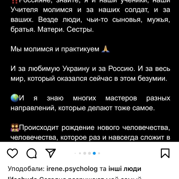 Виступає "за мир", вважає росію братнім народом, жодного разу не сказала, чому в Україні війна і від кого рятується український народ.